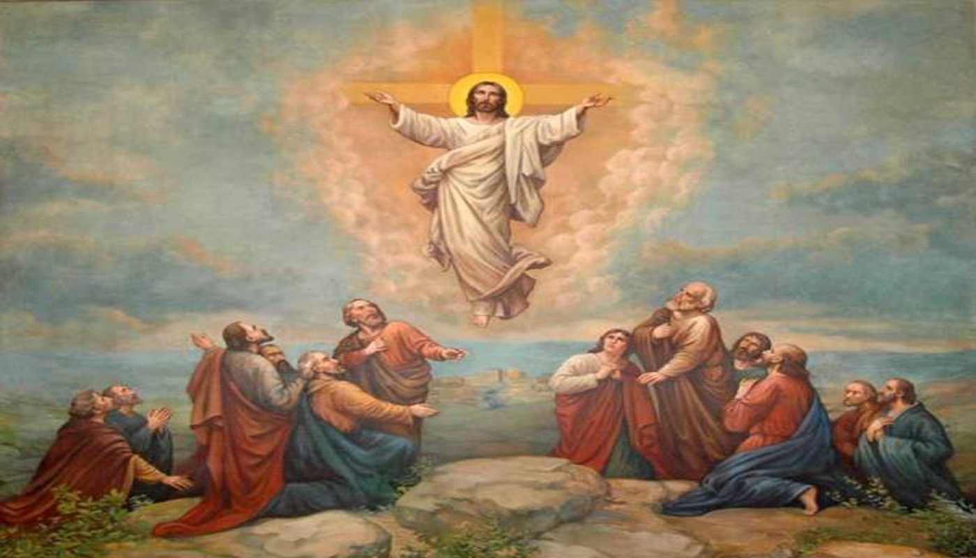 Volgens dit Bijbelverhaal werd de belofte van de heilige Geest vervuld op Pinksteren, vijftig dagen na Pasen. Ook in het Evangelie volgens Lucas, dat van dezelfde auteur is als de Handelingen van de apostelen, wordt verteld over de opname van Jezus in de hemel. Na zijn verschijning aan de leerlingen op de dag van de opstanding, gaat hij met hen de stad uit tot bij Betanië. Dan gebeurt het volgende:
